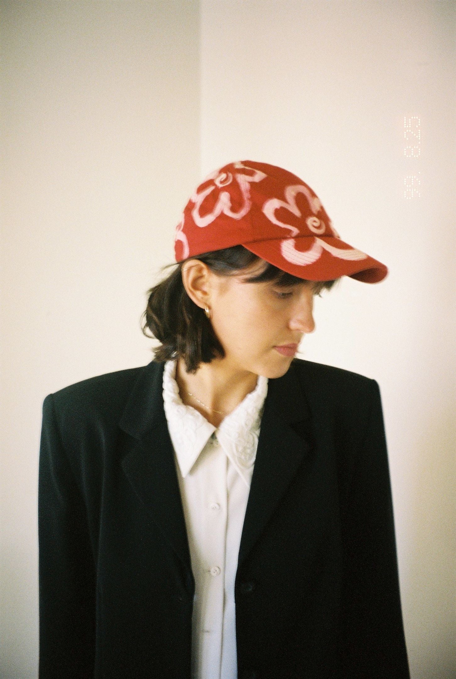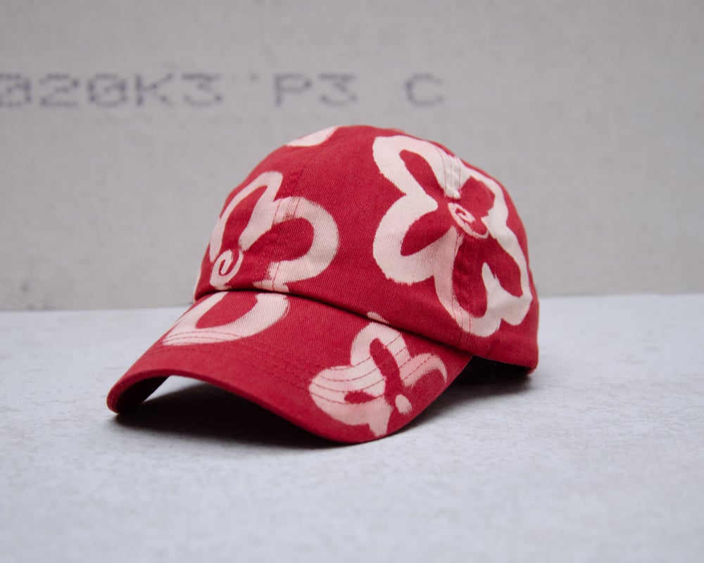 Hand bleached flower cap.